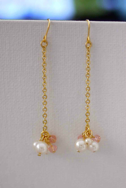 白とピンクの半円のパールビーズと