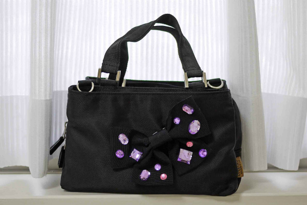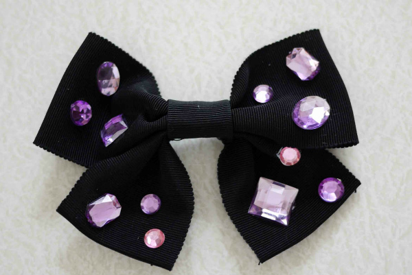 リボンを作り、パープルのラインストーンを貼り付けた。