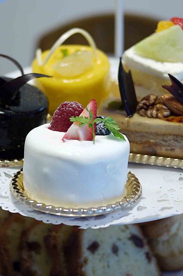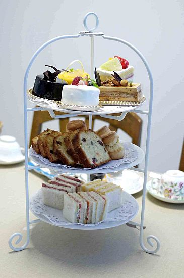 スコーンは、あらかじめ焼いておいた「見せスコーン」で