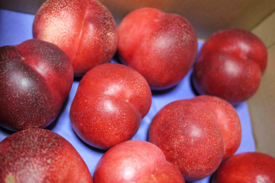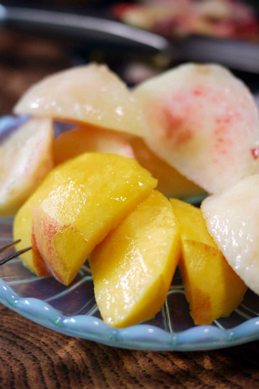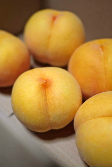 普通の桃(という種類は無い)と果肉の黄色い桃。