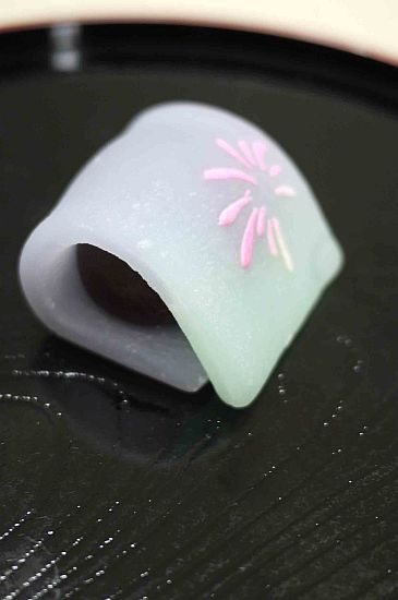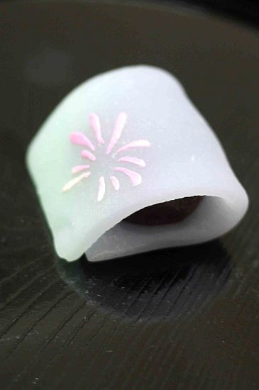 餅がうっすらと浅葱色からうす紫のぼかしになっている。