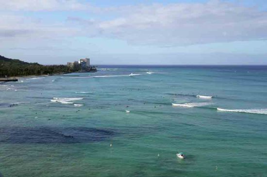 ラナイに出てみると、海には既にサーファーの姿がある。