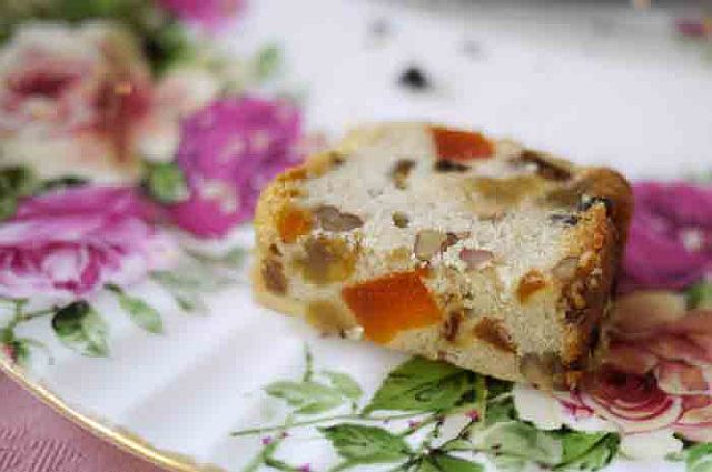 口の中に入れるとケーキの80%がフルーツとナッツ