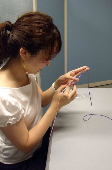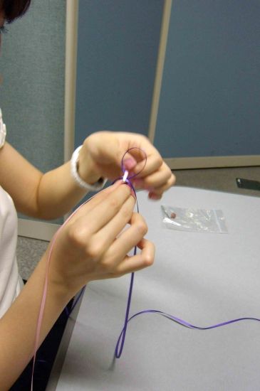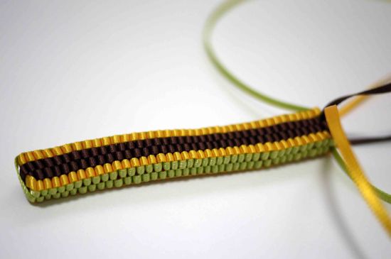 比較的易しい、リボン2本で編む「スクエア・ノット」という編み方のもので