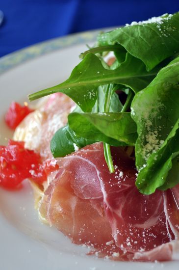 パスタが見えないほど、生ハムとルッコラが乗せてある。