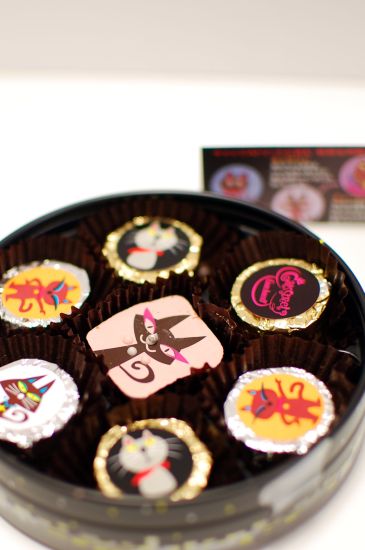 猫が描いてあるチョコの周りに