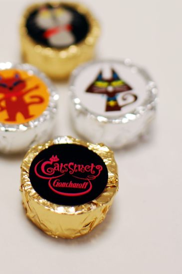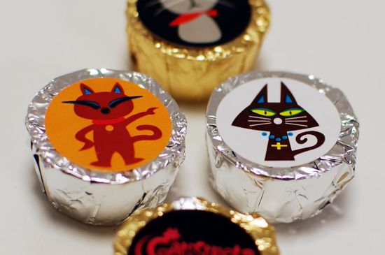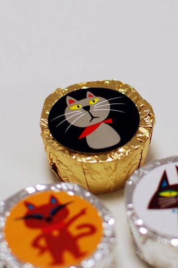 猫のイラストの銀紙で包まれて入るチョコ。