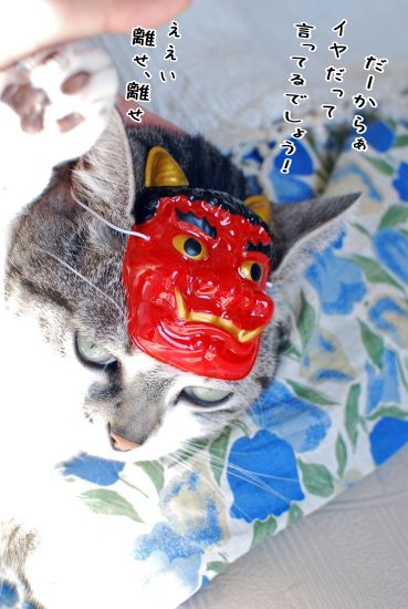 鬼の面を外すのが大変だった。