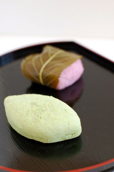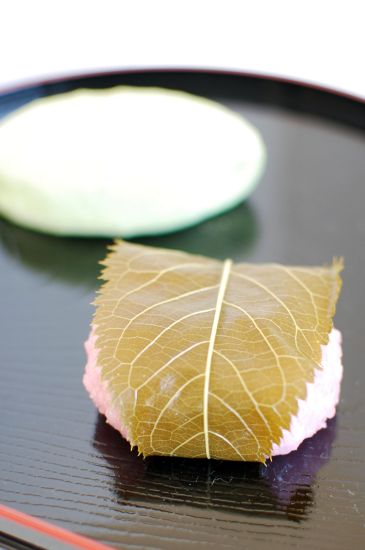 上下を椿の葉で挟んだものは「椿餅」