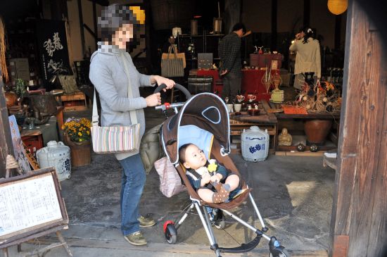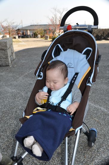 弟がベビーカーを持ち、K子ちゃんがカオルを抱き