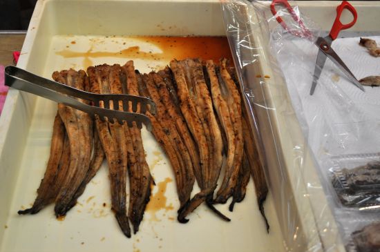 夕方近くになって、商店街の入り口付近にある魚屋には