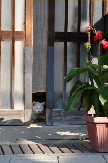 このお宅の飼い猫なのか、当然のような顔で玄関から家に入る猫。