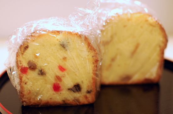 そういうわけで、ラップで包んであるが、フルーツケーキと柚子のパウンドケーキ。