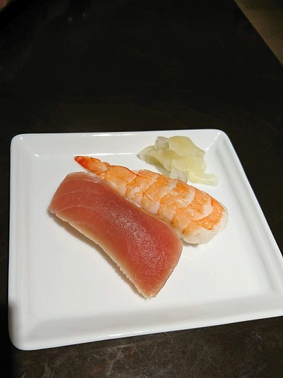 行儀が悪いのを承知で、エビを殻ごと指でつまみ