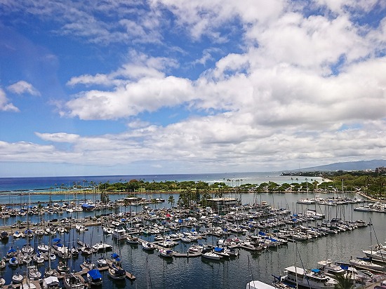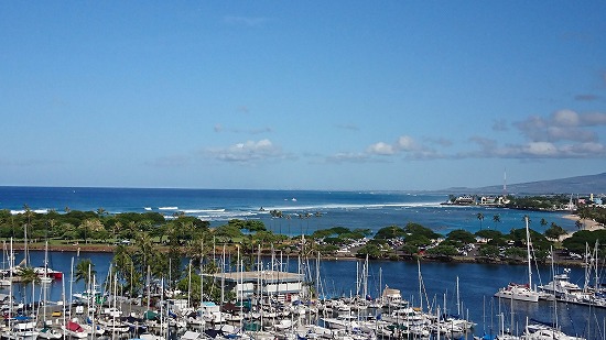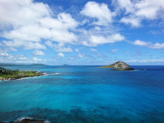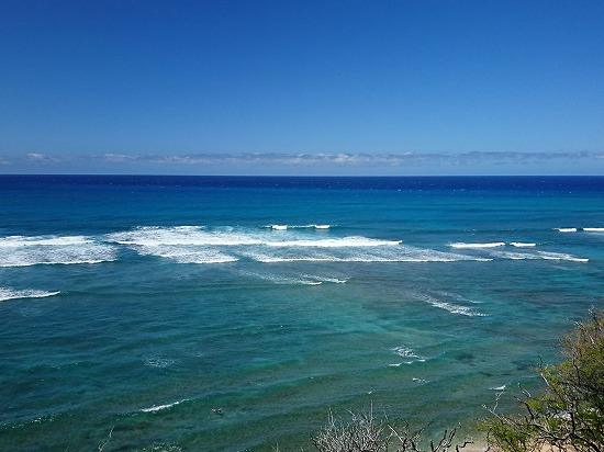 ダイヤモンドヘッドを回る道から見える海。気持ちがいい。