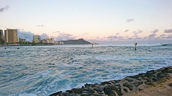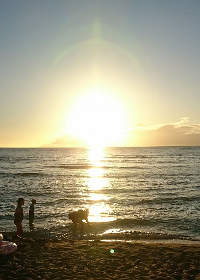 海への日没を見られるのはノースショアまで来たねぎらい、みたいな