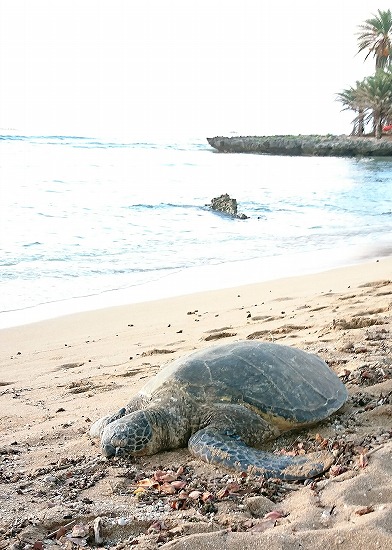 地元の人ばかりが、ウミガメをそっと見守っている。