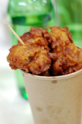 従妹の長男も借り出されて、から揚げとポテトのブースで