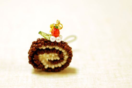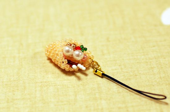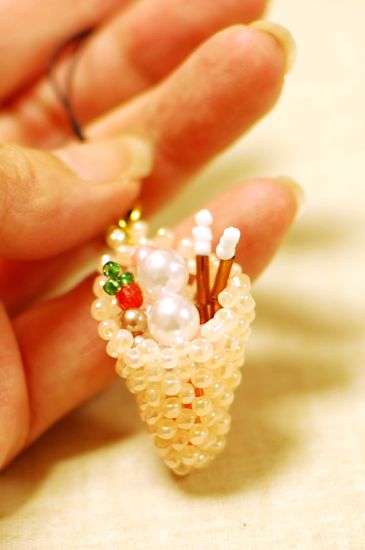 クレープの部分を丸大ビーズで延々と(でもないが)編み