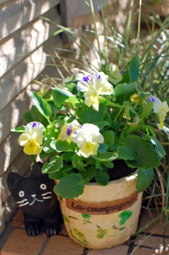 花びらに紫の斑入りのような模様の入ったヴィオラは、そのままだ。