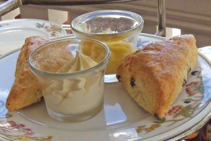 真ん中のお皿には、スコーンとデボンシャー・クローテッド・クリーム、レモンカード。