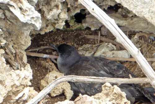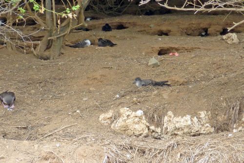 浅い洞窟のような場所には鳥がゴロゴロいる。