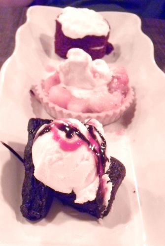 マンゴーのムース、シュークリーム、フルーツ・タルト、チョコレート・クッキー。