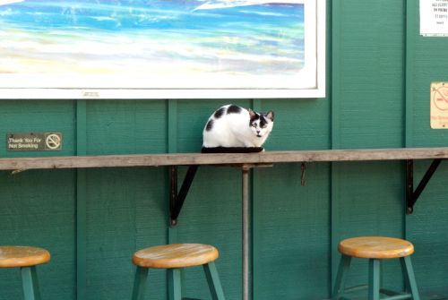 ノース・ショア・マーケット・プレイスの「パタゴニア」という店先にいた猫たち。