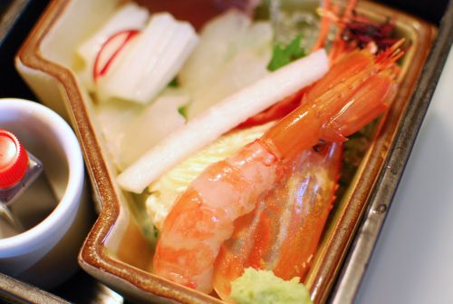 さすが瀬戸内の刺身は違う、と思った鰹とスズキとイカ、甘エビの刺身。