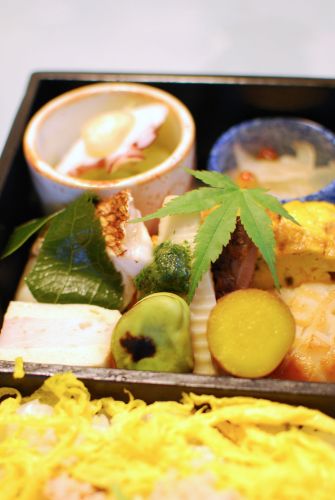 焼いたもの、筍の木の芽味噌かけ、玉子焼き(中味あり)
