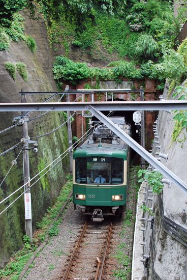 江ノ電 極楽寺駅を降りて、反対方面から来る江ノ電を撮る。