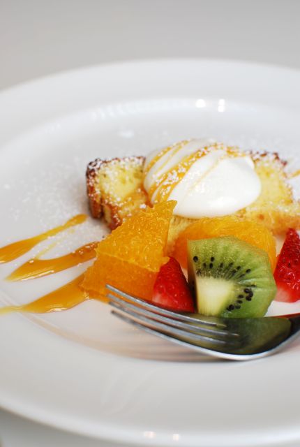 オレンジのシフォンケーキ、フルーツ添え。