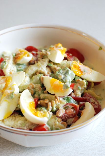 アボカド、トマト、グレープフルーツ、半熟玉子のサラダ