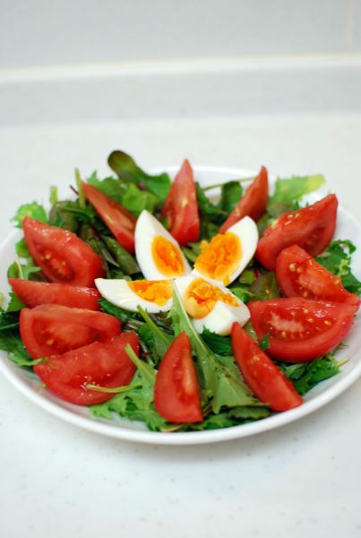 ベビーリーフとトマトとゆで玉子のサラダ。