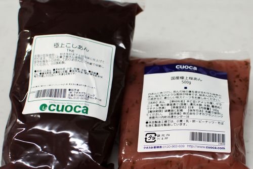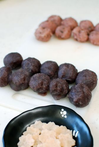 オリジナル用の桜あん、普通のこしあんを丸める。