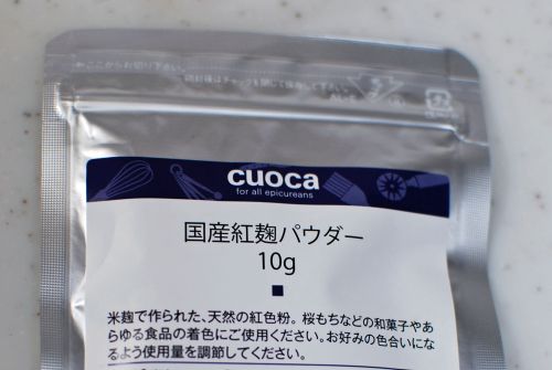 小麦粉、白玉粉、砂糖、紅麹パウダーで色をつけた