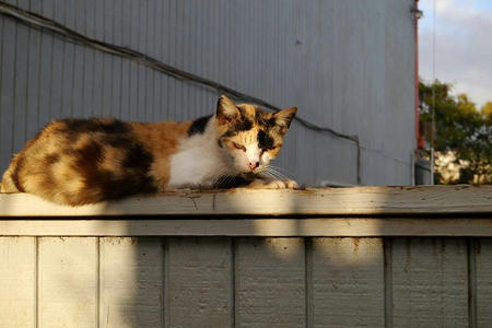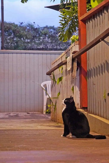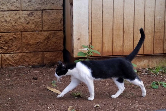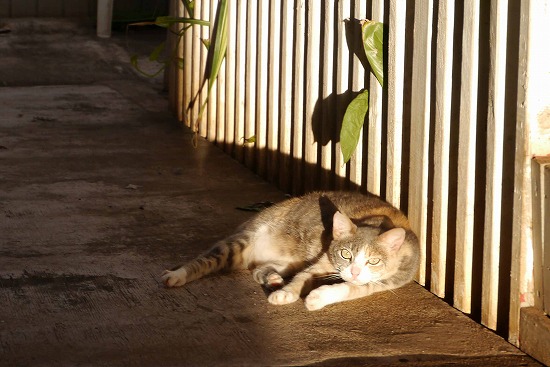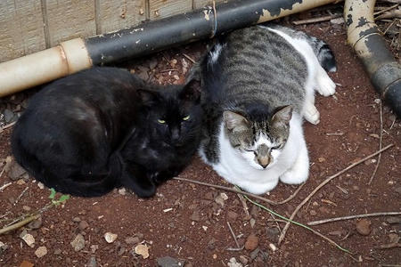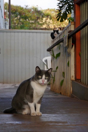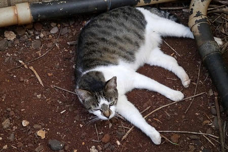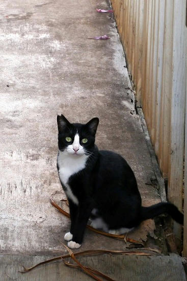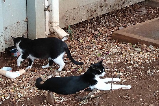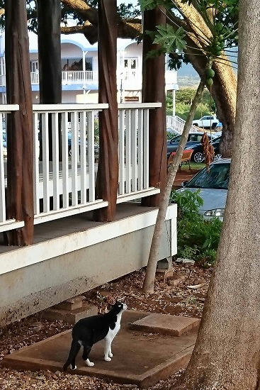 坂の途中で、猫がごはんをもらっているのを見て嬉しくなり
