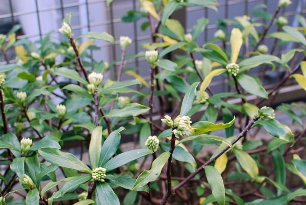 ふと思いついて、家の裏に置いてあった沈丁花の鉢を見ると