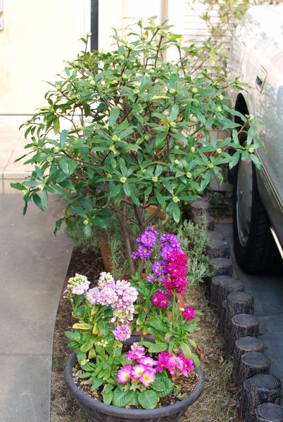 夫に命じて、沈丁花の鉢を家の前に移動してもらう。