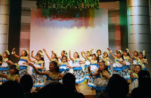 かわいいお子ちゃまたちのフラ。 大喝采。