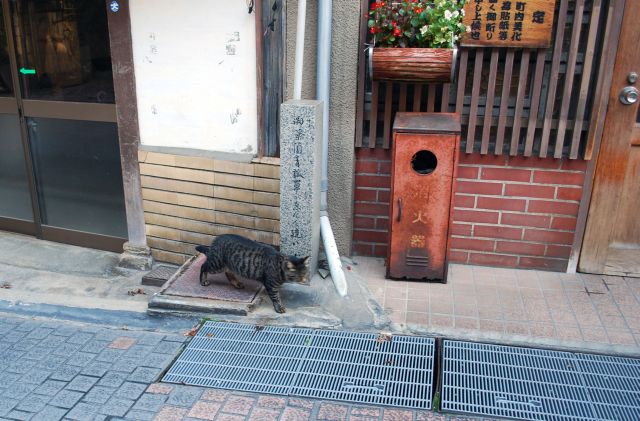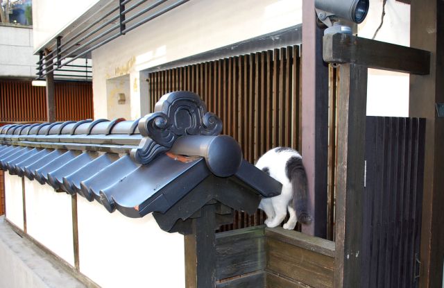旅館の前に座っていたのに、カメラを向けたらそそくさと逃げ出した猫。