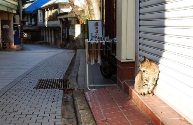 昔ながらの気質の温泉街は猫も住みやすい。