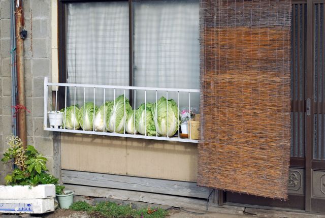 漬物になるべく、干されていた白菜。