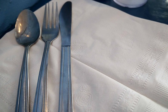 ペラペラのフォークとナイフが、昔からのダイナーって感じ。