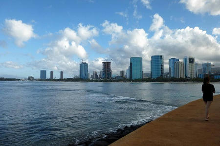 早朝は、常夏のハワイイもそれほど暑くなく、湿気も少ない。