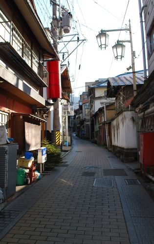 昔ながらの温泉街の石畳を下駄で歩く、という