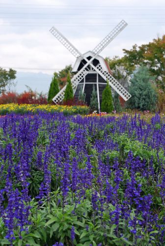 アメジストセージの向こうには風車。