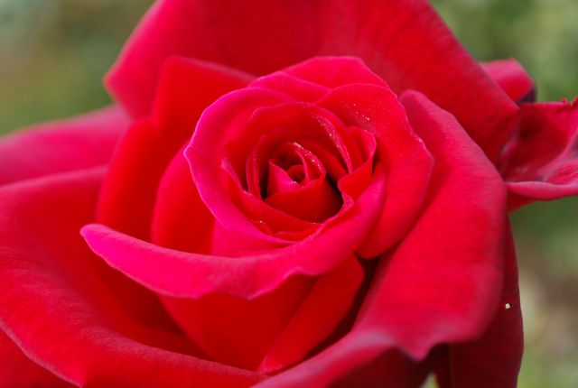 ど迫力、朱がかった赤いバラ。