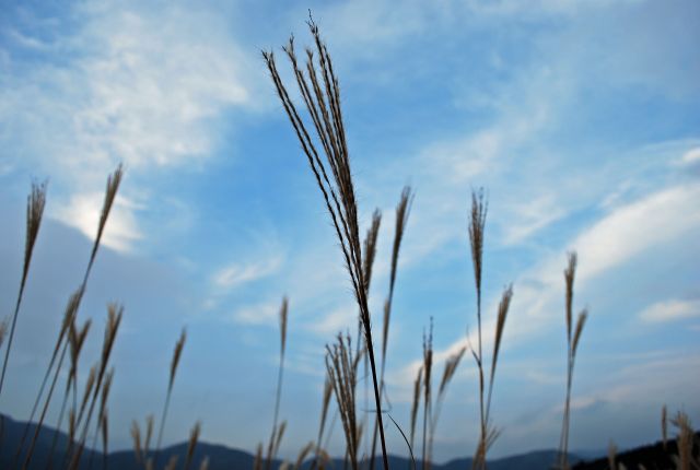 ススキは細いので、ピントがうまいこと合わない。