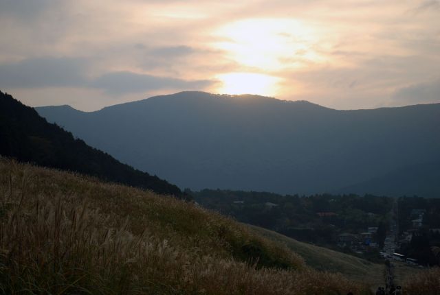 ススキの原の日没。